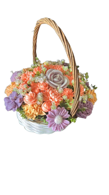 Sunset Harmony este un coșuleț floral realizat manual, ce îmbină armonios flori portocalii și mov din ceară de soia 100% naturală. Nuanțele calde și vibrante evocă frumusețea unui apus de vară, oferind un decor inedit și plin de culoare. Ideal pentru cadouri speciale sau pentru a aduce o notă de eleganță și veselie în orice colț al casei.